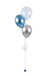 Bunt balona je prigodan za razne događaje, a u njemu se nalaze 3 balona. Jedan bubble balon s plavim točkicma i 2 shiny latex balona u srebrnoj i plavoj boji.