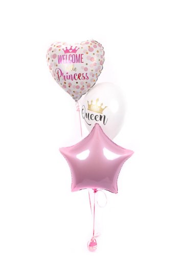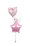 Dekoracija sadrži 2 folijska balona: jedan u obliku roze zvjezdice i jedan u obliku srca dimenzije cca 48 cm i jedan lateks balon s tiskom.