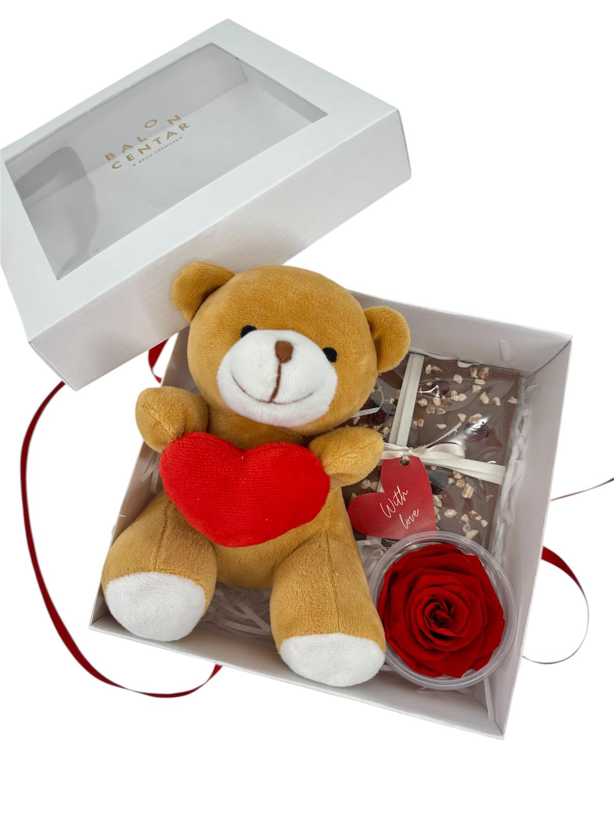 Poklon box - medo, čokolada i dehidrirana ruža