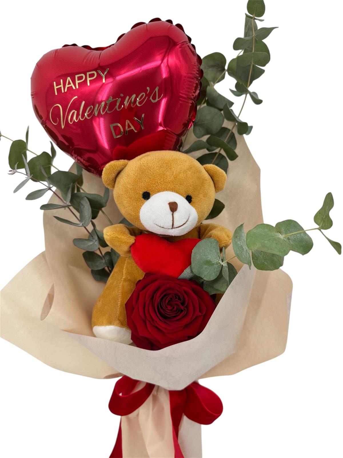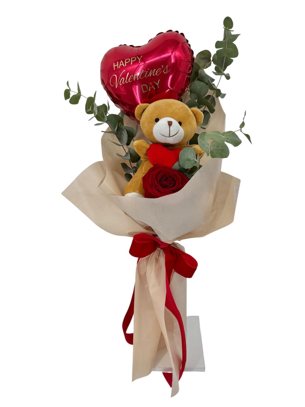 Romantični buket s medekom, eukaliptusom i personaliziranim balonom čini ga savršenim poklonom za Valentinovo. Spoj nježnih detalja i personalizirane poruke idealan je način da pokažeš koliko ti je stalo. U napomenu narudžbe slobodno napiši ime ili mini tekst koji želiš da piše na balonu. Naruči našu specijalnu dostavu na svoju adresu ili na adresu osobe kojoj poklanjaš i priredi romantično iznenađenje.