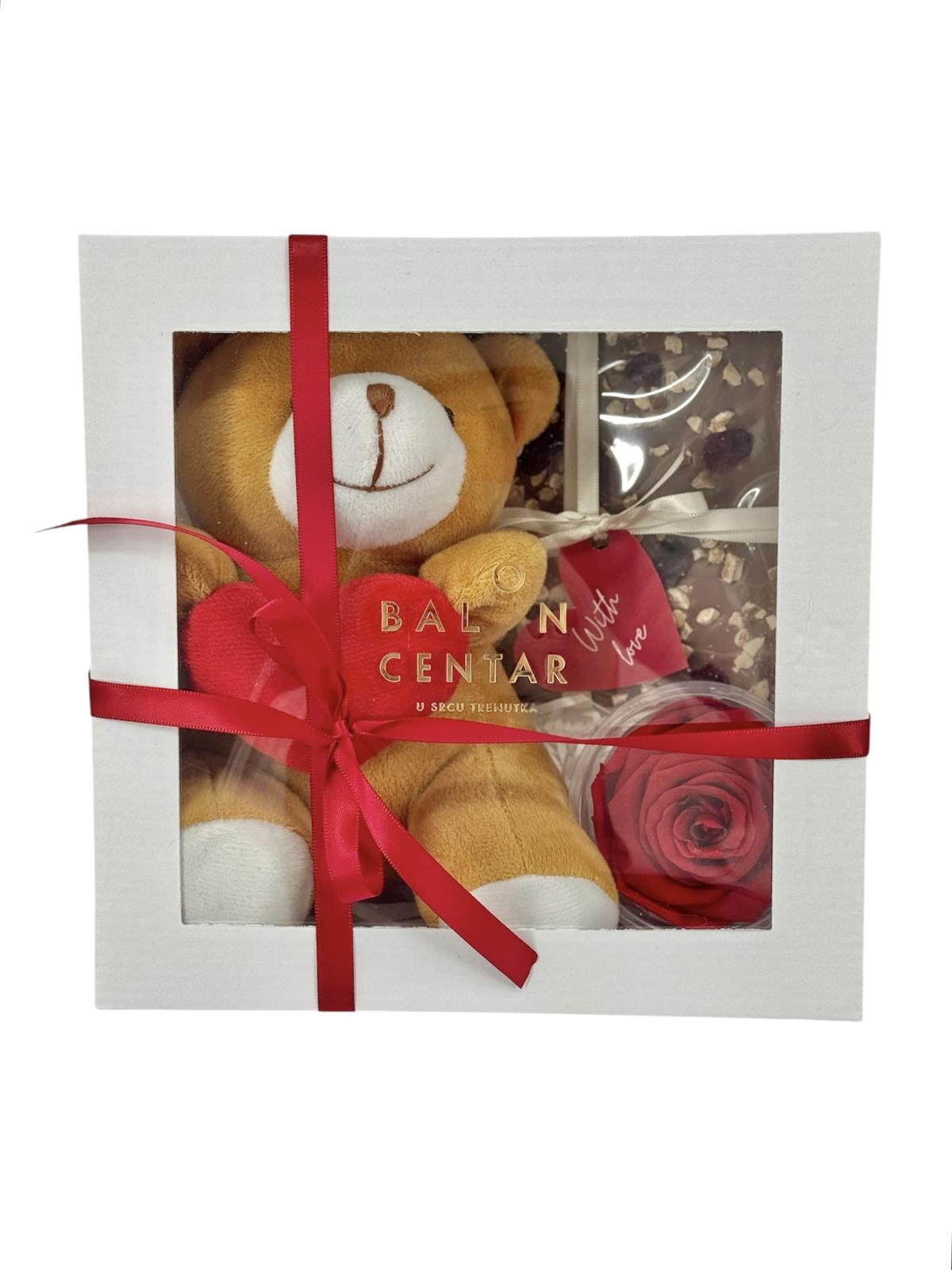 Poklon box - medo, čokolada i dehidrirana ruža