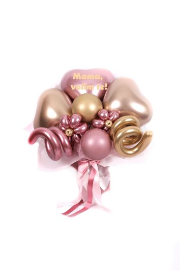 Dekoracija sadrži latex balone u obliku srca i cvijetiće od modeling balona puhani na zrak,skupljeni u buket. Na jednom od balona nalazi se naljepnica sa predloženim tekstom.